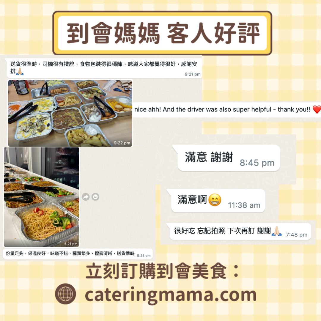 Catering Mama 專業到會服務,公司活動、家庭朋友聚會首選,免運費送貨至全港各區!