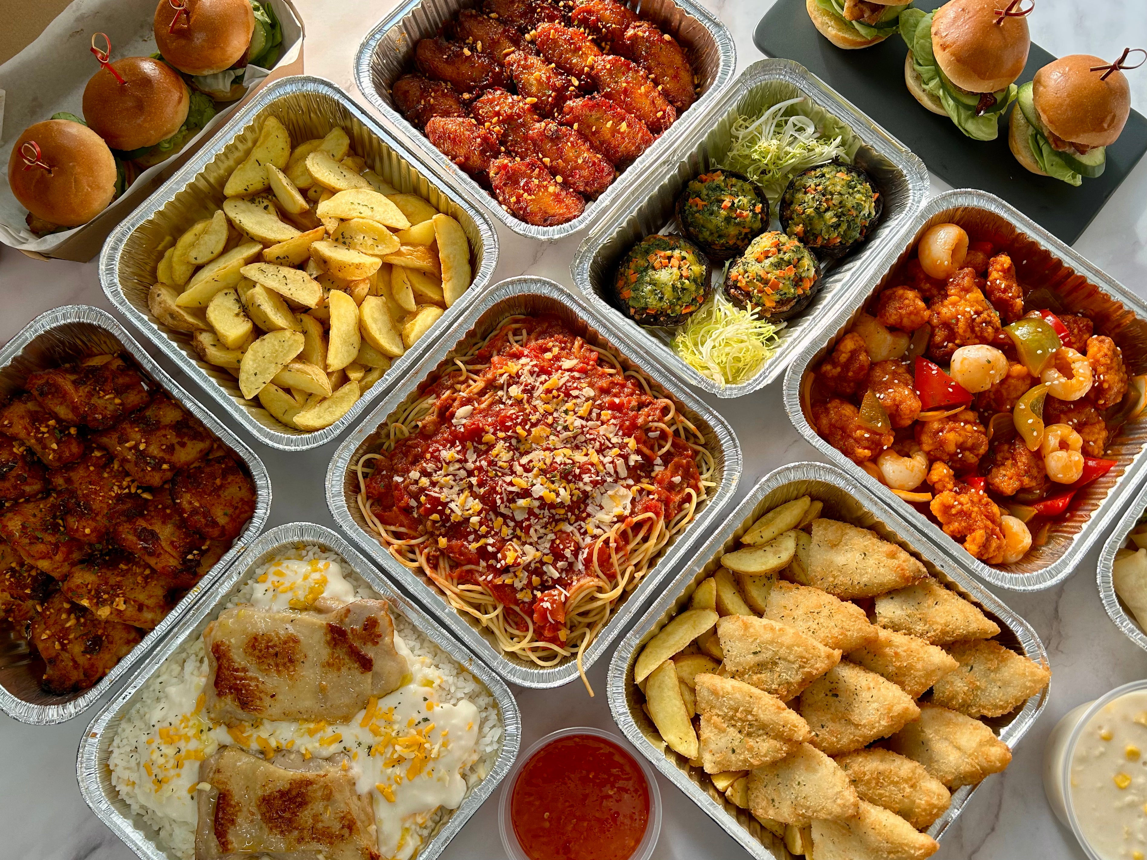 套餐特色:份量較豐富,而且每款小食及甜品一人一件!如多於 100人,可以按此直接 WhatsApp 我們的客服團隊查詢喔!